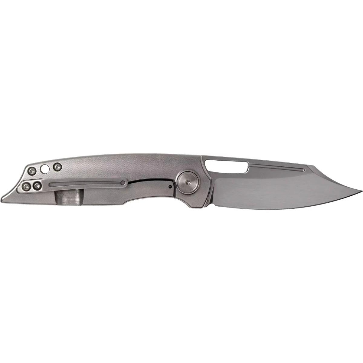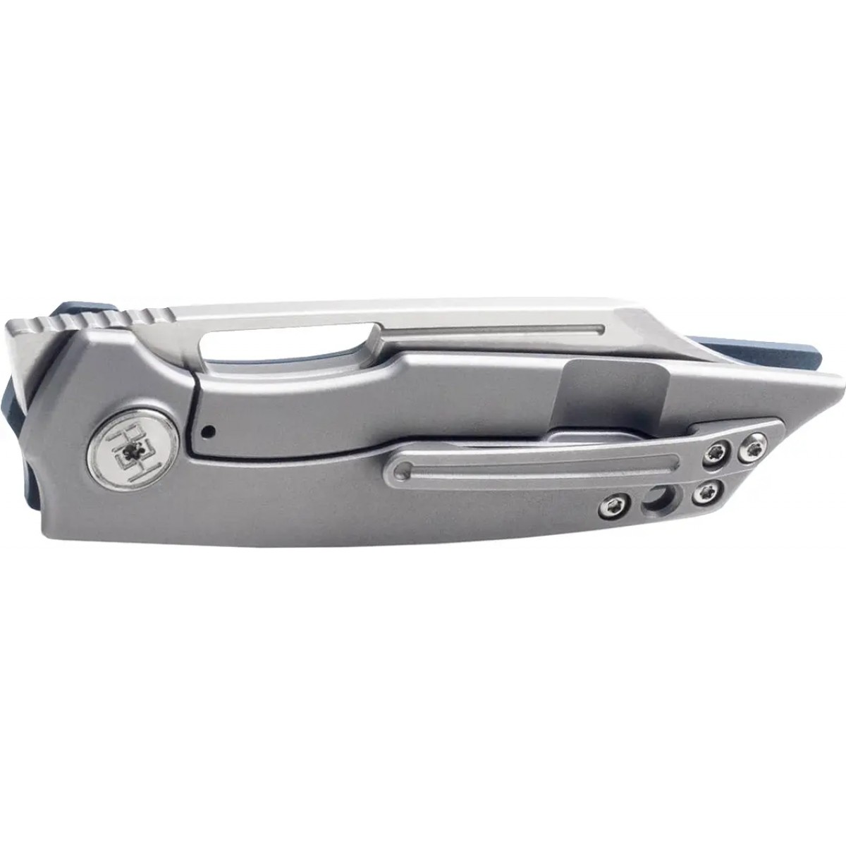 Клинок типа Clip point с выразительным фальш-лезвием изготовлен из инструментальной стали D2, способной долгое время сохранять остроту режущей кромки. Благодаря шарикоподшипнику он легко извлекается одной рукой при помощи фронтального флиппера или подпальцевого отверстия и надежно фиксируется замком Frame lock.