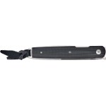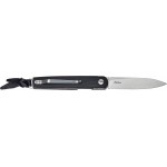 Накладки на рукоять могут быть изготовлены из G-10, дерева кокоболо или карбона. Замок типа Liner Lock надежно фиксирует клинок в рабочем положении. Разработчики с выдумкой подошли к реализации спейсера – он довольно массивный, выступает за пределы рукоятки в районе навершия и заканчивается прямоугольным отверстием для темляка.