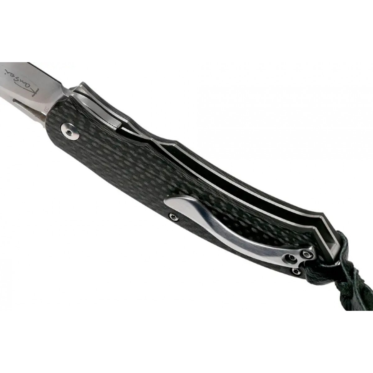 Накладки на рукоять имеют две вариации: прочный стеклотекстолит G-10 или углеродное волокно. При этом лайнеры, спейсер, клипса и прочая фурнитура выполнены из неражавеющей стали независимо от выбранной модели.