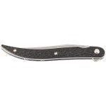 Boker Plus представляет новую интерпретацию популярного в XIX столетии ножа «Техасская зубочистка». Утонченный клинок выполнен из японской высокопрочной стали VG-10, твердостью 61 единиц по Роквеллу. Извлекается клинок с помощью флиппера с насечками под палец. В отличие от своей исторической модели, нож Texas Tooth Pick надежно фиксируется в рабочем положении стальной пластиной замка Liner Lock, что значительно повышает его пригодность для повседневного использования. Изогнутые черные накладки на рукоятке выполнены из текстурированного G10 или из древесины кокоболо, в зависимости от модели, и обеспечивают идеальное положение руки. Финишная обработка Stonewash придает шероховатый вид клинку и клипсе и скрывает следы эксплуатации.