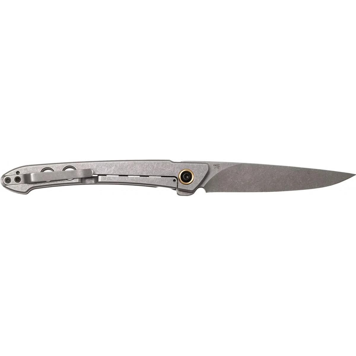Клинок выполнен из нержавеющей стали 440С, которая отличается высокой износостойкостью, с финишной обработкой stonewash. Извлекается с помощью флиппера и фиксируется в рабочем положении с помощью замка Frame Lock. Мягкий и быстрый выход клинка обеспечивается благодаря наличию системы шарикоподшипников.