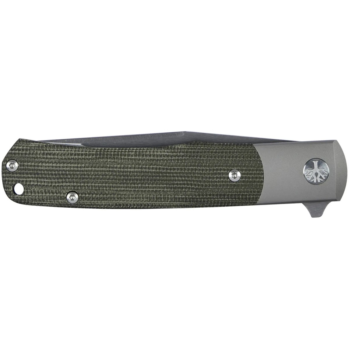 Клинок профиля Drop Point изготовлен из высококачественной порошковой металлургической стали MagnaCut (62-63 HRC) и открывается чрезвычайно плавно с помощью флиппера. Сталь, из которой изготовлен клинок, характеризуется, прежде всего, высокой износостойкостью, прочностью и коррозионной стойкостью. Привлекательное двухцветное покрытие, добавляет элегантности клинка. Фиксируется с помощью классического замка Frame Lock.
