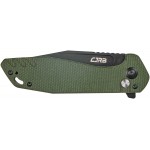 CJRB Riff – крепкий складной нож, который непременно найдет свое место как в походном снаряжении, так и в кармане для ежедневных задач. Модель оснащена массивным клинком профиля Clip Point. Для его создания послужила фирменная сталь компании — AR-RPM9 (Artisan-Rare Powdered Material 9 Element Steel). Эксклюзивная сталь имеет однородную структуру, которая позволяет сохранять режущую кромку острой на протяжении длительного периода, проста в правке и отлично выдерживает нагрузки. Ярко выраженное фальшлезвие гарантирует хорошие проникающие качества. На обеих сторонах клинка размещен дол на всю длину обуха, что позволило уменьшить вес клинка без потерь в функциональных качествах. Насечки на обухе предназначены для упора большим пальцем для более деликатного реза. Клинок может иметь обработку Stonewash или защитное, черное PVD (Physical Vapor Deposition) покрытие. Приводится в рабочее положение флиппером, а фиксируется замком Button Lock. Плавный выход клинка гарантирует система керамических шарикоподшипников. Накладки на рукояти могут варьироваться, в зависимости от выбранной модели: микарта или G-10. На торце размещена удобная карманная клипса глубокой посадки и отверстие под темляк.