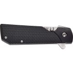 Если вы являетесь поклонником легендарного пистолета Colt 1911, нож этой модели просто обязан быть в вашей коллекции. Рукоять текстурированная, выполнена из материала Griv-Ex и повторяет форму рукояти пистолета. Клинок из стали 4034SS выбрасывается при помощи флиппера или шпенька. Фиксация происходит при помощи замка Liner Lock, снабженном дополнительным блокирующим механизмом, который препятствует срыву пятки клинка.