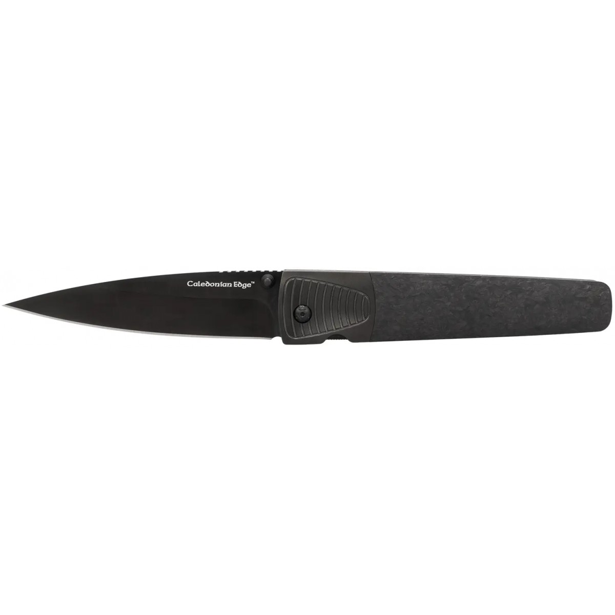 Cold Steel Caledonian Edge - одна из моделей ножей, входящих в серию «60». Caledonian Edge получил изящный, идеально симметричный клинок профиля Spear Point из стали 20CV. Нож приводится в рабочее положение шпеньком и фиксируется замком Liner Lock. Насечки на обухе придают дополнительный упор во время интенсивной работы. Эргономичная рукоять получила и накладки из черного, углеродного волокна, которые идеально дополняют клинок с черным PVD покрытием. На конце рукояти размещена клипса для удобного ношения ножа на кармане или снаряжении.