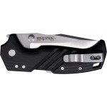 Клинок профиля Clip point выполнен из нержавеющей стали марки S35VN. Извлекается клинок с помощью двустороннего рифленного шпенька и фиксируется в рабочем положении с помощью замка Atlas Lock — нового технологического решения от компании Cold Steel. Механизм Atlas Lock, по сути, является новым витком развития замка Tri-Ad Lock.