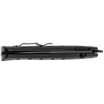Клинок оснащен фальшлезвием до середины обуха, благодаря чему обладает отличными проникающими способностями. Извлекается клинок либо с помощью шпенька, либо с использованием флиппера. Наличие вейва добавляет еще один альтернативный вариант для извлечения клинка при выхватывании ножа из кармана брюк.