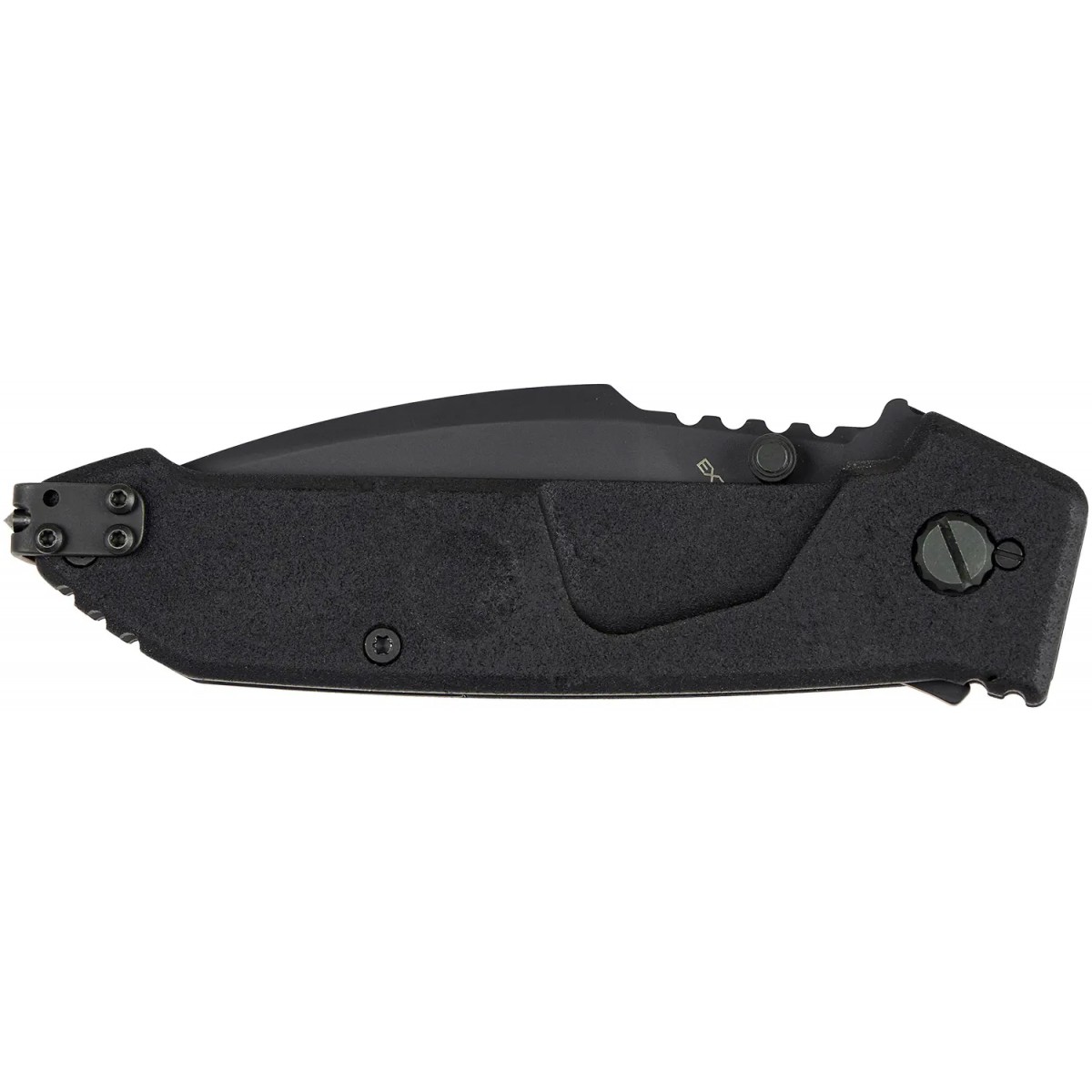 Широкий клинок профиля Drop Point наделяет нож отличными колюще-режущими качествами, а легированная кобальтом сталь Böhler N690 твердостью 58 HRC хорошо выдерживает интенсивные нагрузки, в том числе и поперечные. Финишное покрытие клинка Black Oxide MIL-C-13924 прекрасно защищает от коррозии и может варьироваться в зависимости от модели: чисто черное или с лазерной гравировкой в виде маскировочных полос. Для комфорта и уверенности во время использования, на обухе размещен ряд массивных насечек для упора большим пальцем. Приводится в рабочее положение, как левой, так и правой рукой, с помощью двустороннего шпенька. Фиксируется в открытом виде с помощью надежного замка Liner Lock. Extrema Ratio позаботилась о безопасности и для предотвращения случайного открытия был установлен предохранитель, который надежно фиксирует клинок в открытом или закрытом положении. Также линейка MF получила нововведение - регулировочный осевой винт, благодаря которому можно отрегулировать плавность выхода клинка.