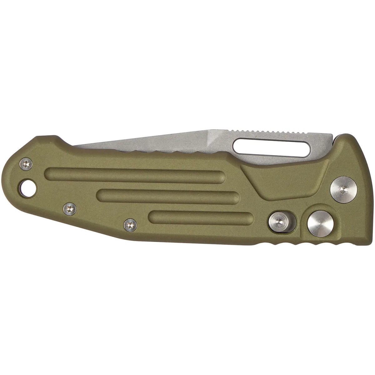 Рукоятка изготовлена из анодированного алюминия. Спереди на рукоятке есть выступ для большого пальца, что обеспечивает лучший хват ножа. Тефлоновые шайбы обеспечивают бесперебойную работу механизма открытия клинка, который можно открыть путем нажатия на кнопку, находящуюся на рукоятке. Рядом с кнопкой открытия находится фиксатор, осуществляющий блокировку от случайного открытия ножа.