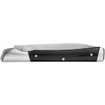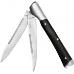 Клинки профиля Clip point и Spear point выполнены из стали марки 7Cr17MoV с финишной обработкой satin. Даная сталь отличается прочностью, износостойкостью и способностью удерживать режущую кромку острой на протяжении длительного периода. Клинки извлекаются с помощью ногтевого зацепа и фиксируются в рабочем положении с помощью замка slip joint.