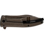 Складной нож Boilermaker - результат совместного сотрудничества Kershaw и найфмейкера Леса Джорджа. Отличительная особенность ножа - он полностью выполнен из нержавеющей стали, благодаря чему неприхотлив и практичен. Для лучшего баланса ножа, задняя часть накладки облегчена, а в передней присутствует небольшой вырез сквозь который можно увидеть логотип производителя. Вся поверхность ножа имеет обработку Stonewash вместе с PVD покрытием имитирующим ржавчину. Клинок формы Drop-point является одним из наиболее универсальных и подойдет для любых задач, выполнен он из нержавеющей стали марки 8Cr13MoV, отличающейся хорошими антикоррозионными свойствами, а также легкостью правки режущей кромки. Ярко выраженный флиппер в паре с небольшой насечкой на верхней части обуха препятствуют скольжению руки при силовом проколе. Открывание ножа осуществляется с помощью флиппера, дополненному системой Speed Safe, ускоряющей выход клинка. В качестве замка выбран проверенный временем механизм Frame-lock. Нож также дополнен карманной односторонней клипсой.