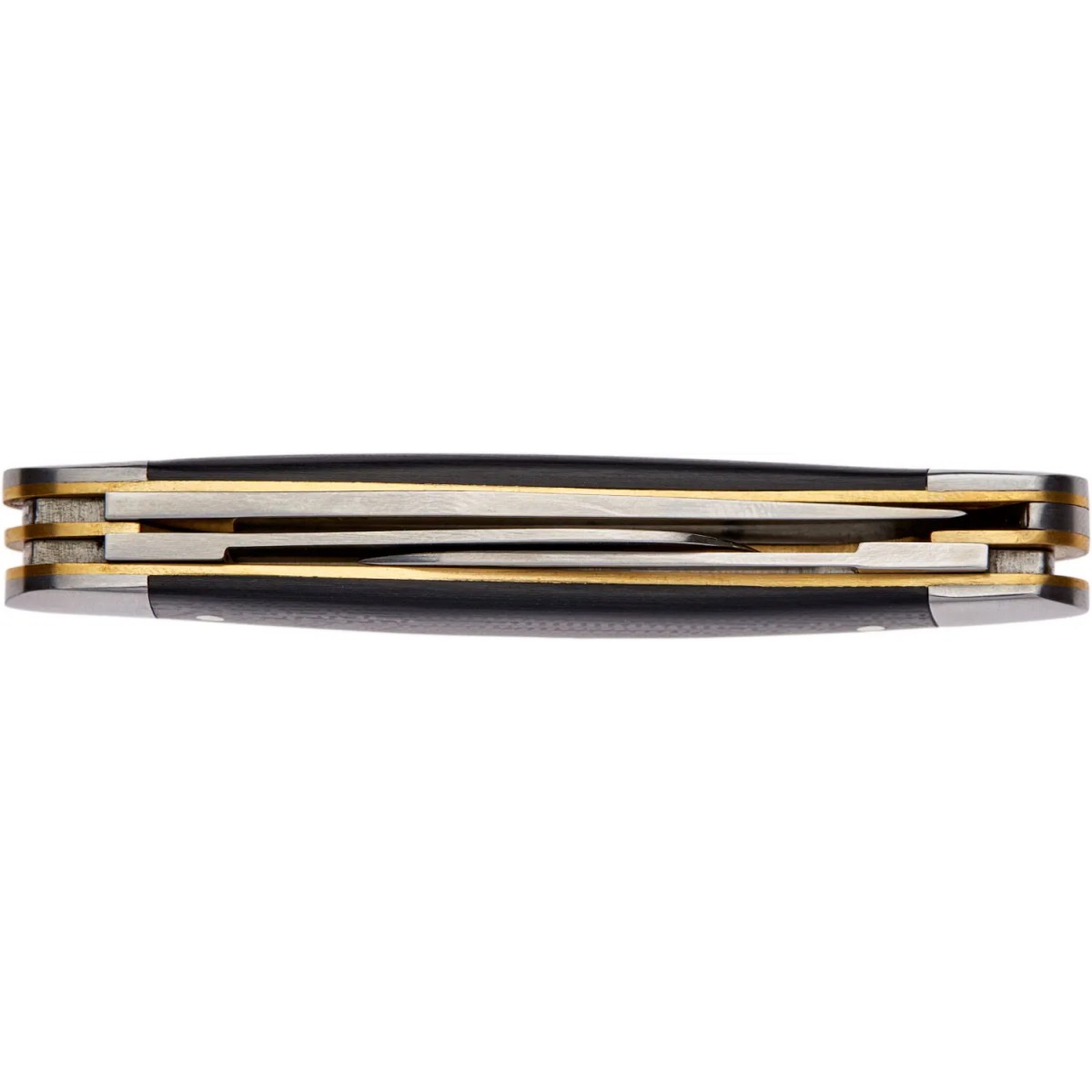 Клинки изготовлены из легированной нержавеющей стали 7Cr17Mov, которая благодаря ванадию в составе имеет повышенную прочность, износостойкость и ударную вязкость, а также сохраняет режущую кромку острой на продолжении длительного периода времени. Клинки извлекаются с помощью подпальцевой выемки и фиксируются самым простым и широко распространенным замком slip joint, который не даст ножу случайно сложиться и повредить пальцы.