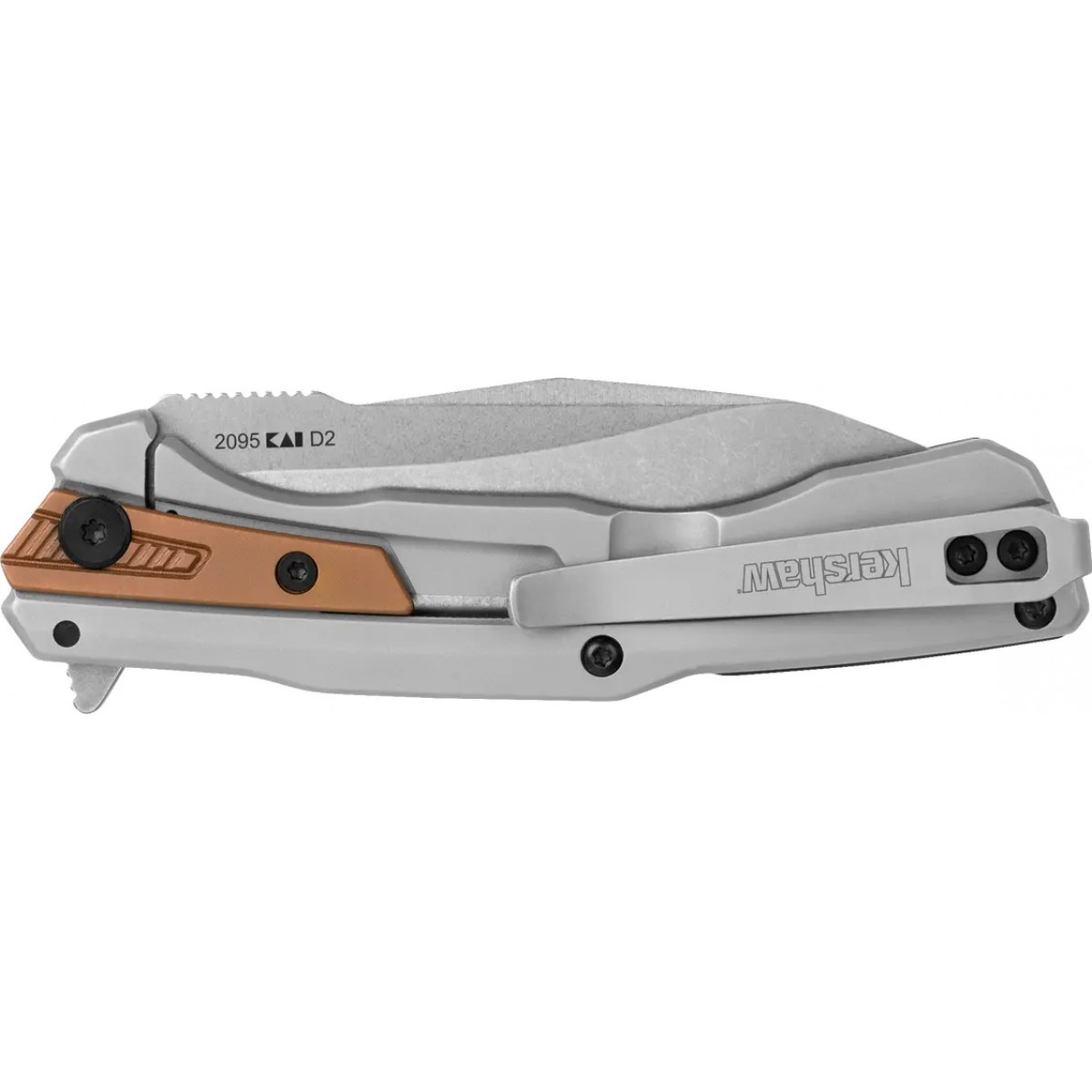 Клинок в формате Spear Point с выгнутой режущей кромкой, делающей его схожим с форматом Sheep foot, изготовлен из стали D2 с покрытием Stonewash. Стоит отметить интересную геометрию клинка, открывающую широкий ряд возможностей. Открывается клинок при помощи флиппера, фиксируется на замок Frame lock.