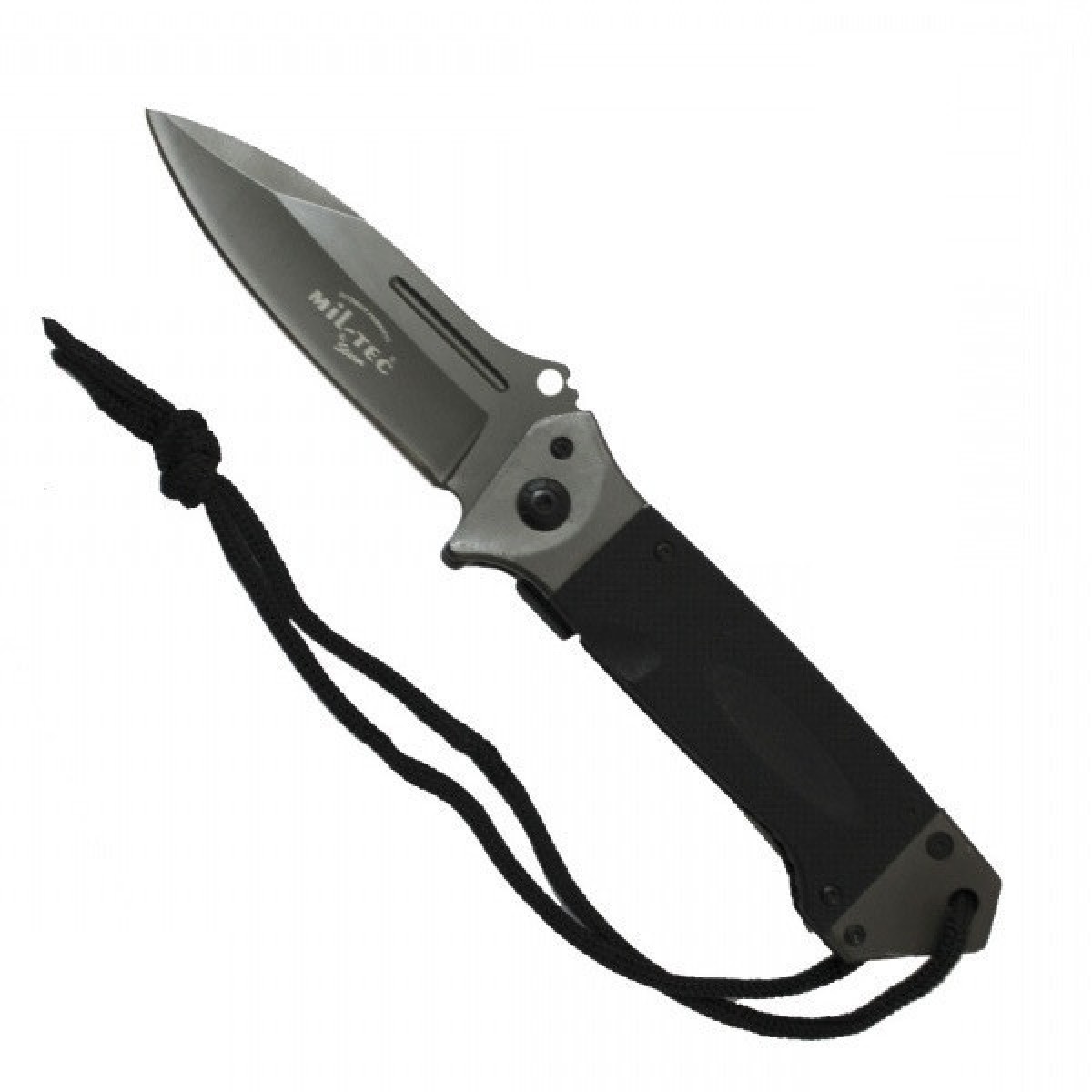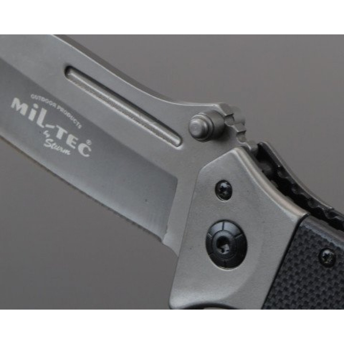Туристический складной нож довольно крупного размера от немецкой компании Mil-Tec. Благодаря форме клинка нож идеально подходит для реза, колки и рубки. Такой тип заточки довольно популярный благодаря двум режущим поверхностям основного лезвия и кончика, что существенно расширяет диапазон применений. Рукоять стальная с накладками из полимера G10. Оборудована клипсой для крепления ножа в кармане, на поясе или на снаряжении. Имеет отверстие под темляк. Как и большинство современных складных ножей, данная модель оборудована фиксатором лезвия по типу Liner Lock.