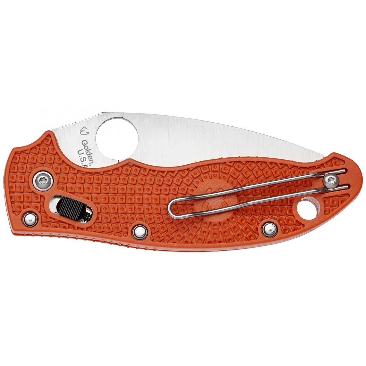 Manix является одним из самых прочных ножей фирмы Spyderco. Во-первых, он оснащен надежным замком бэклок, во-вторых - отличной порошковой сталью Crucible Particle Metallurgy S30V, созданной специально для клинков ножей. Рукоятку составляют каркасные направляющие, увеличивающие жесткость, при этом не добавляя в весе. Накладки сделаны из сверхпрочного стеклотекстолита G-10. Нож отлично сбалансирован, легко открывается и закрывается. С обратной стороны клинка, над 14-милиметровым окном открытия, имеются насечки для большого пальца, что позволяет лучше контролировать рез. Клипса может быть установлена как с правой, так и с левой стороны ножа и направлена и вверх, и вниз.