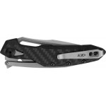 Рукоять с накладками из карбона выполнена в футуристическом стиле и имеет длинный бекспейсер, состоящий из двух боковых лайнеров и пластиковой вставки с надписью "Zero Tolerance", а также винта для упора клинка. Бекспейсер занимает пространство практически во всю длину обуха рукоятки и зафиксирован винтами и, по сути является ограничителем клинка при открытии клинка. Это означает, что клинок имеет наименьшее количество мест соприкосновения режущей кромки с деталями ножа в сложенном виде.