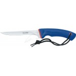 Рукоять ножа изготовлена из текстурированного полипропилена, имеет удобную подпальцевую выемку и упор для большого пальца с мелкими насечками для предотвращения выскальзывания ножа из руки. Сатинированный клинок изготовлен из нержавеющей стали 420С.