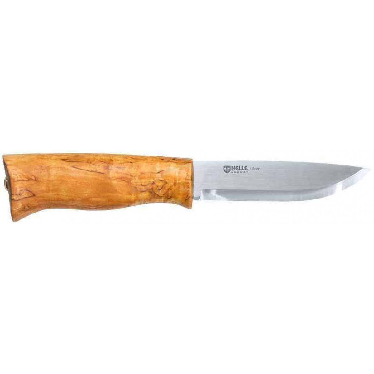 Новая модель Helle Ulven (Волк) разрабатывалась как универсальный нож для туриста или охотника. Форма рукояти из карельской березы, рассчитанная на среднюю и крупную ладонь, позволяет уверенно контролировать нож даже в перчатках.