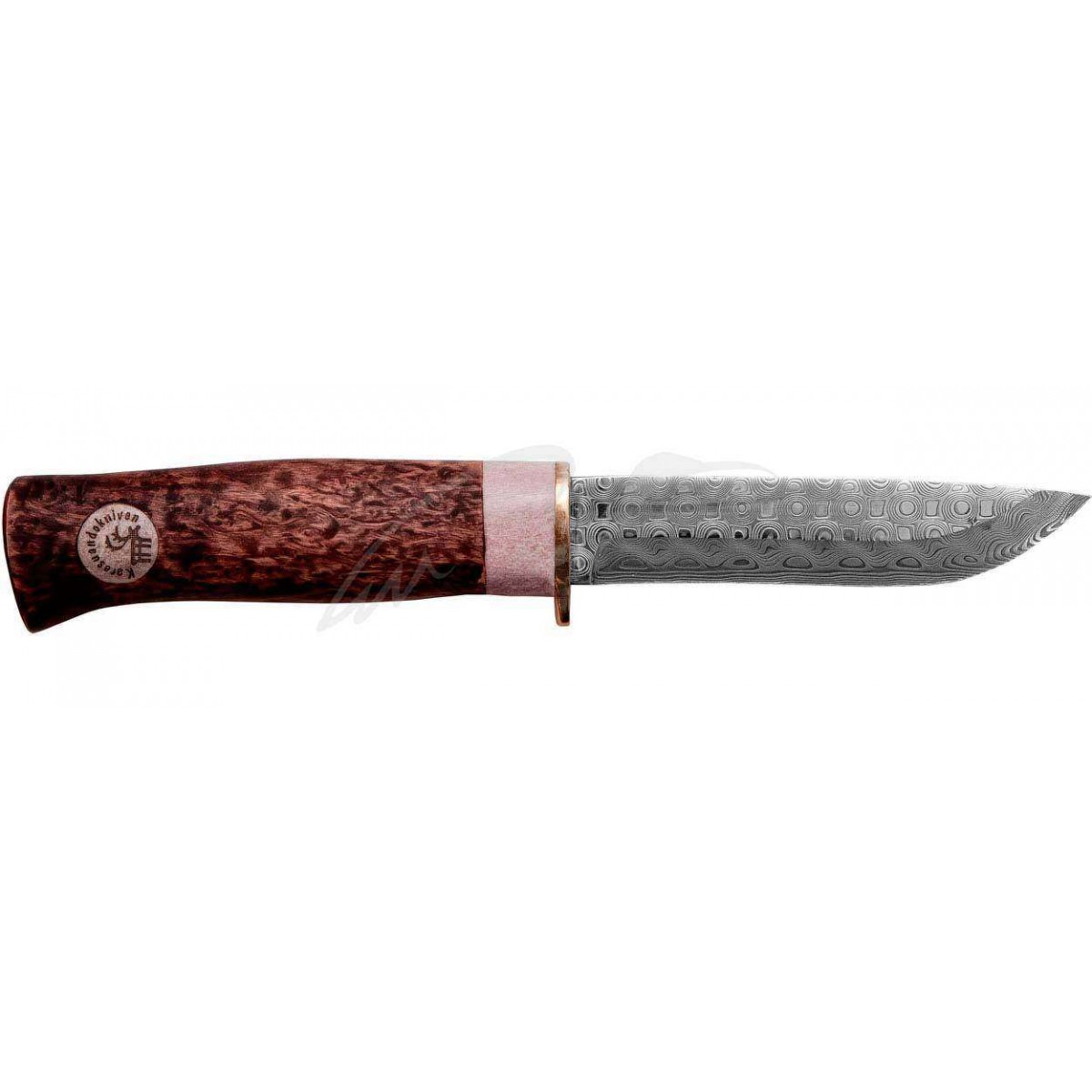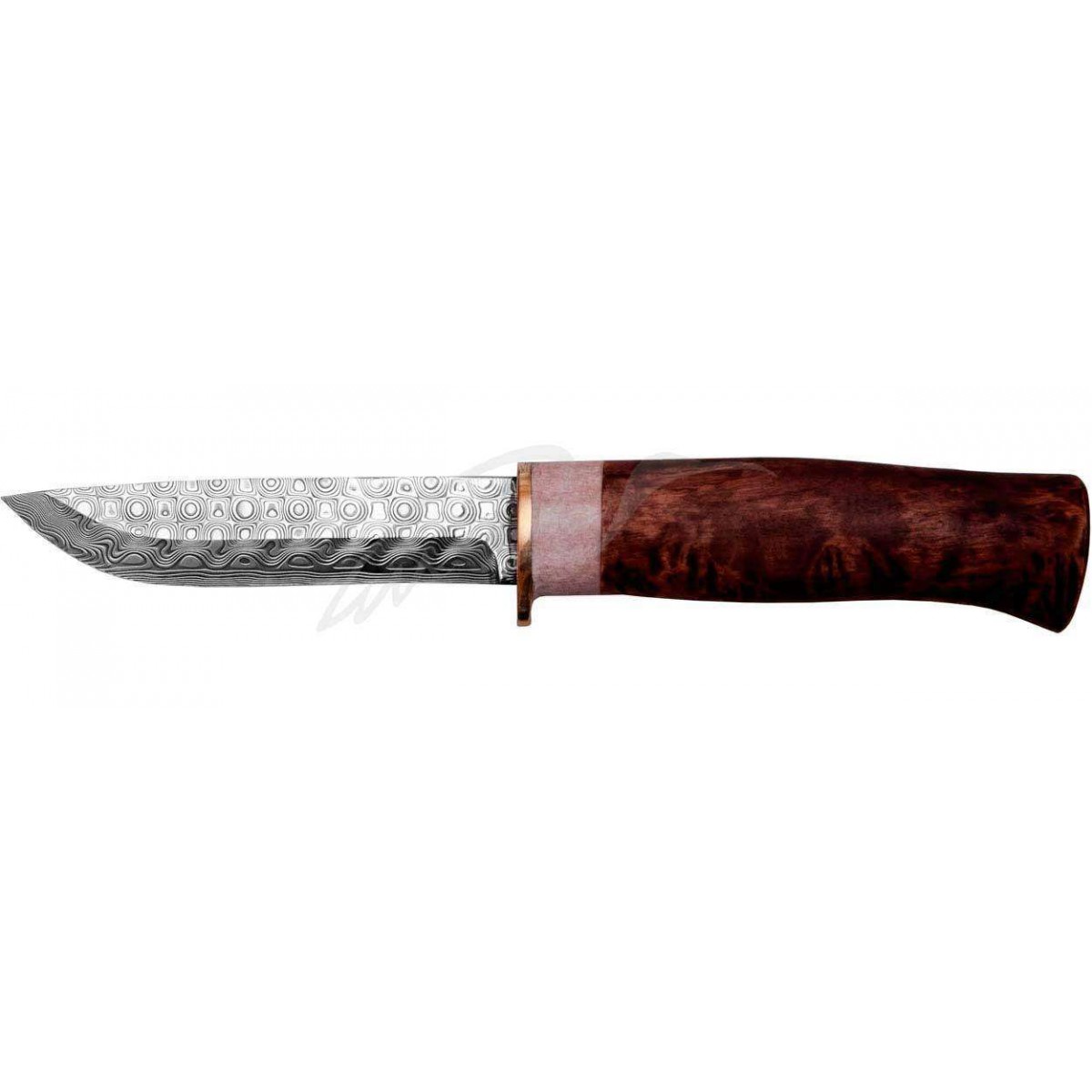 Karesuandokniven Baver Damask - элегантный нож из дамасской стали, выполненный в национальных традициях шведских мастеров. Представлен в двух вариантах исполнения: с длиной клинка 85 см в модели Beaver 8 и 100 см в модели Beaver 10. Материал рукояти – карельская береза. Между клинком и рукоятью установлены вставки из оленьего рога, а на самой рукоятке предусмотрен небольшой защитный выступ (гарда). Нож комплектуется кожаными ножнами, а так же подарочной коробкой, выложенной мехом северного оленя.Отзывы о Нож Karesuandokniven Baver Damask 10