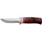 Karesuandokniven Baver Damask - элегантный нож из дамасской стали, выполненный в национальных традициях шведских мастеров. Представлен в двух вариантах исполнения: с длиной клинка 85 см в модели Beaver 8 и 100 см в модели Beaver 10. Материал рукояти – карельская береза. Между клинком и рукоятью установлены вставки из оленьего рога, а на самой рукоятке предусмотрен небольшой защитный выступ (гарда). Нож комплектуется кожаными ножнами, а так же подарочной коробкой, выложенной мехом северного оленя.Отзывы о Нож Karesuandokniven Baver Damask 8