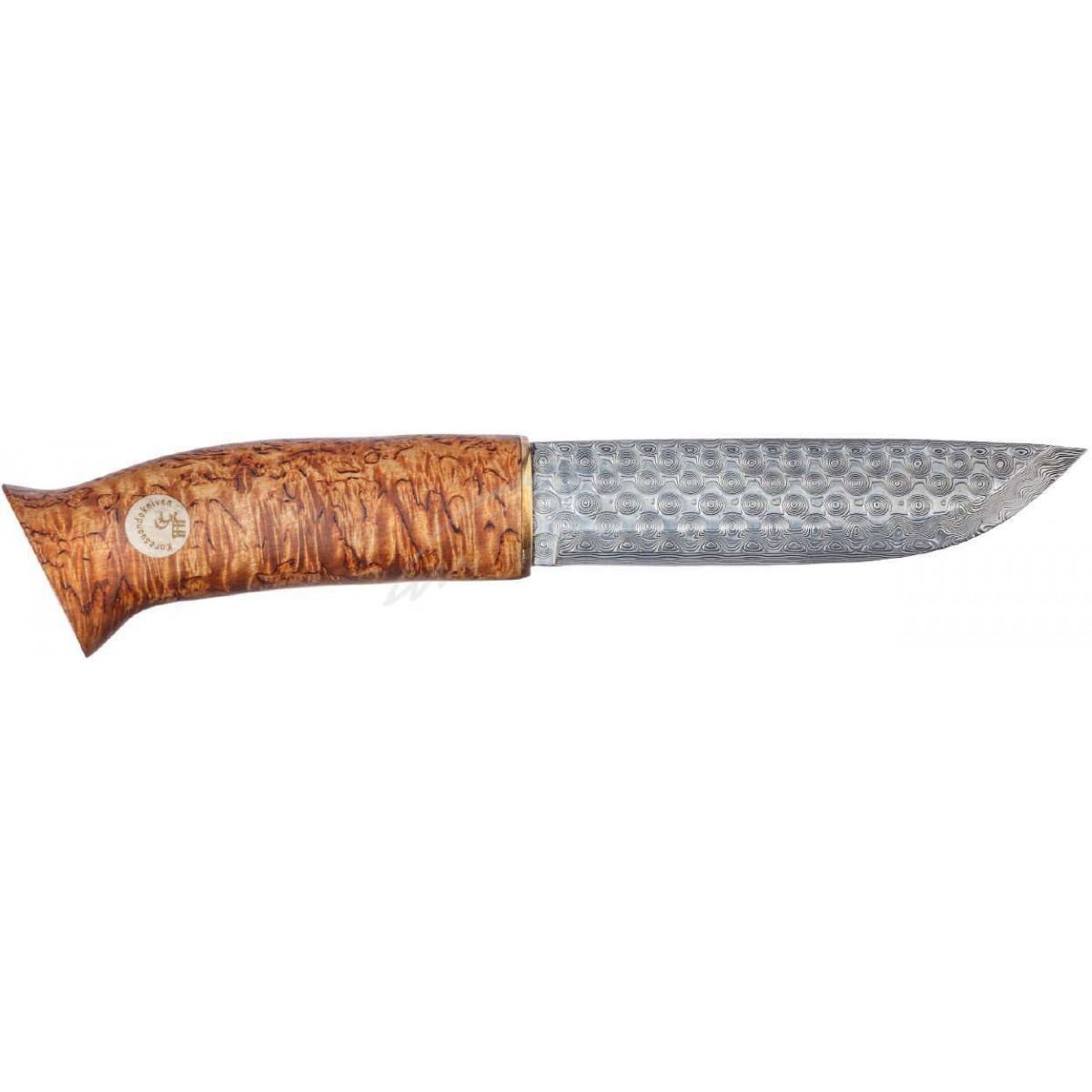 Рукоять выполнена из карельской березы и рога северного оленя.