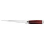 Рукояти ножей серии Classic Kitchen 1891 изготовлены из отборной древесины шведской березы, окрашенной в темно-красный цвет. Металлические части рукояти выполнены из нержевеющей стали. На тыльной части навершия нанесен логотип компании Morakniv, подтверждающий оригинальность и качество продукции.