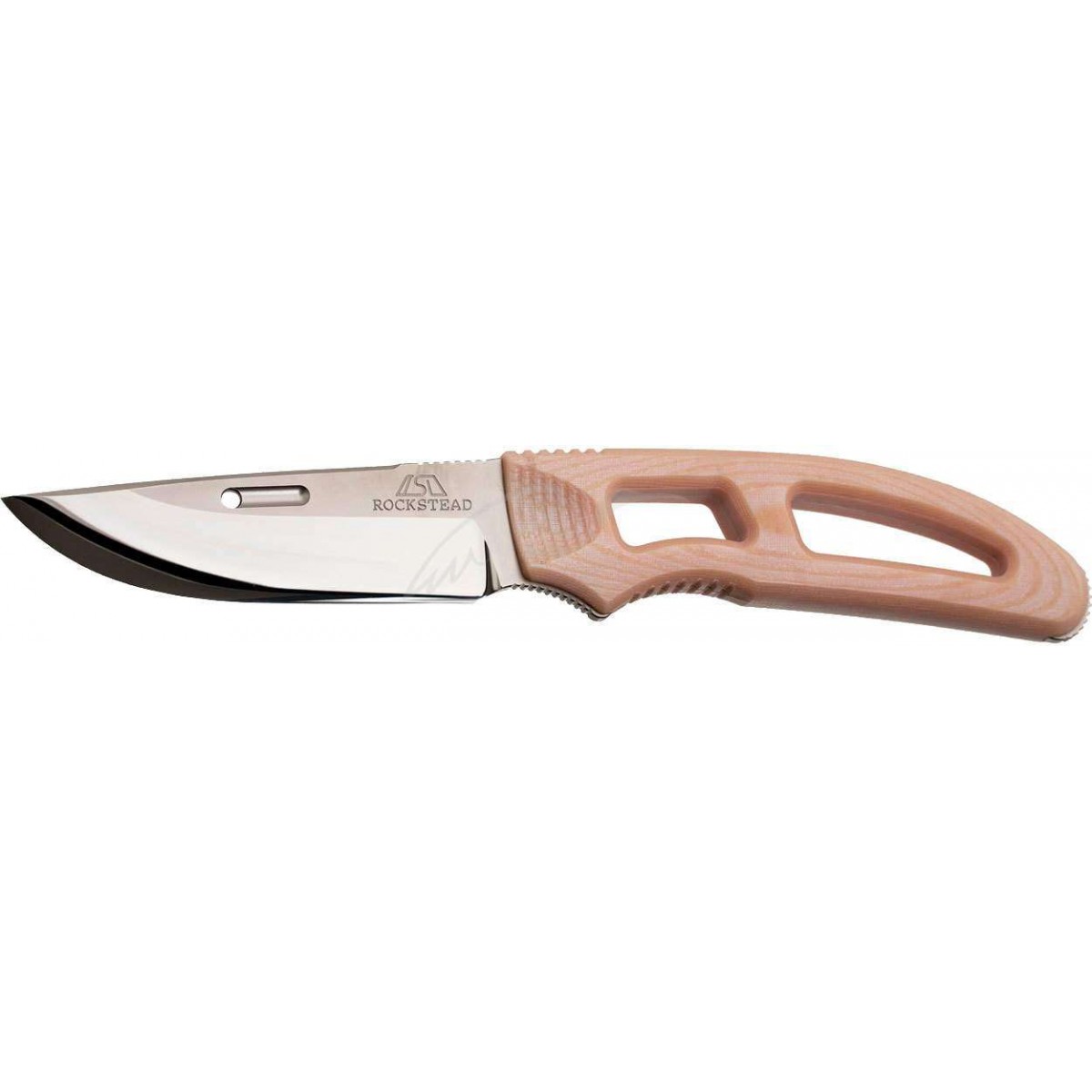 Rockstead KEI - компактный и легкий нож с фиксированным клинком, предназначенный, в первую очередь, для любителей активного отдыха. Сам клинок формы традиционной японской формы «хондзукури», изготовленный из порошковой нержавеющей высокоуглеродистой стали ZDP-189 производства корпорации Hitachi Metals, обладает отличными показателями реза, длительного удержания остроты режущей кромки (во время теста на канате из манильской пеньки нож практически не утратил режущие свойства даже после 780-ти резов) и показателями твердости HRc67. Однако не стоит подвергать нож чрезмерным ударным нагрузкам во избежание выкрашивания режущей кромки. Накладки на рукоять выполнены из микарты.