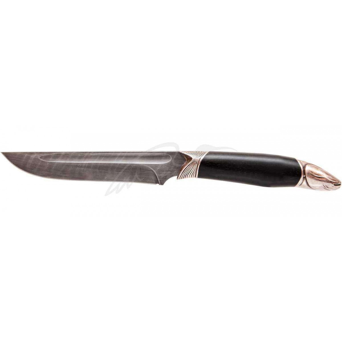 В ноже "Сом" от Северной Короны с первого взгляда видно изящество. Навершие в виде головы сома, рукоять черного дерева, больстер в форме хвоста и кинжалоподобный клинок дамасской стали объединяются в стройную и красивую композицию.Отзывы о Нож Северная Корона &"quot;Сом&"quot;