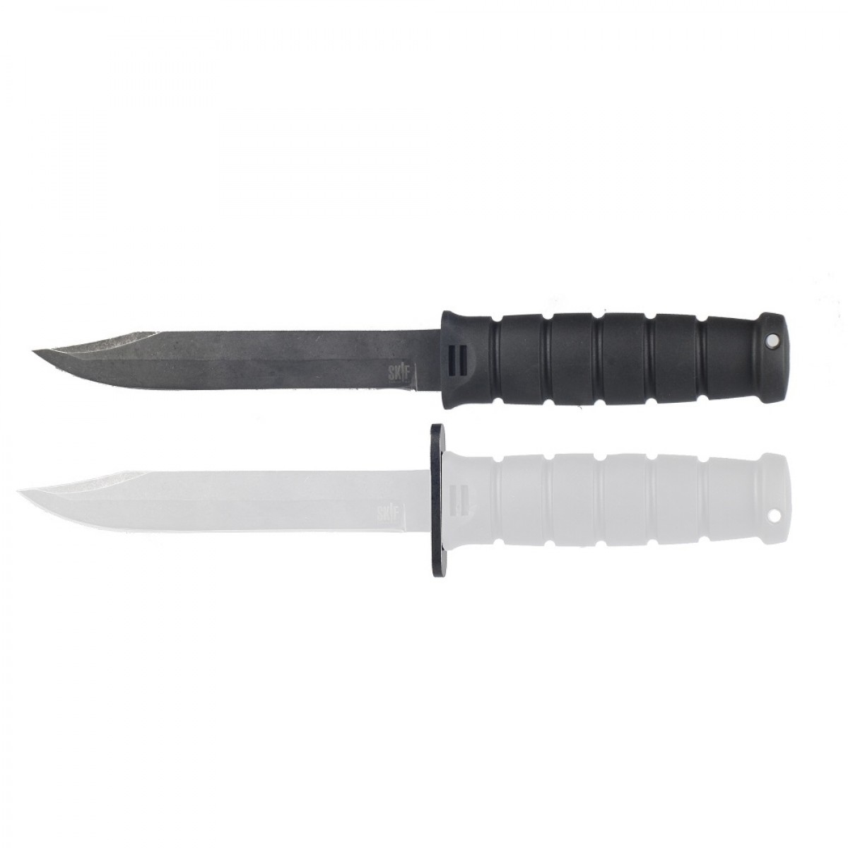 В комплекте – пластиковые ножны, совместимые с системой MOLLE – для размещения на большинстве видов современного тактического и военного снаряжения. Клипса на ножнах предусматривает крепление на поясе.