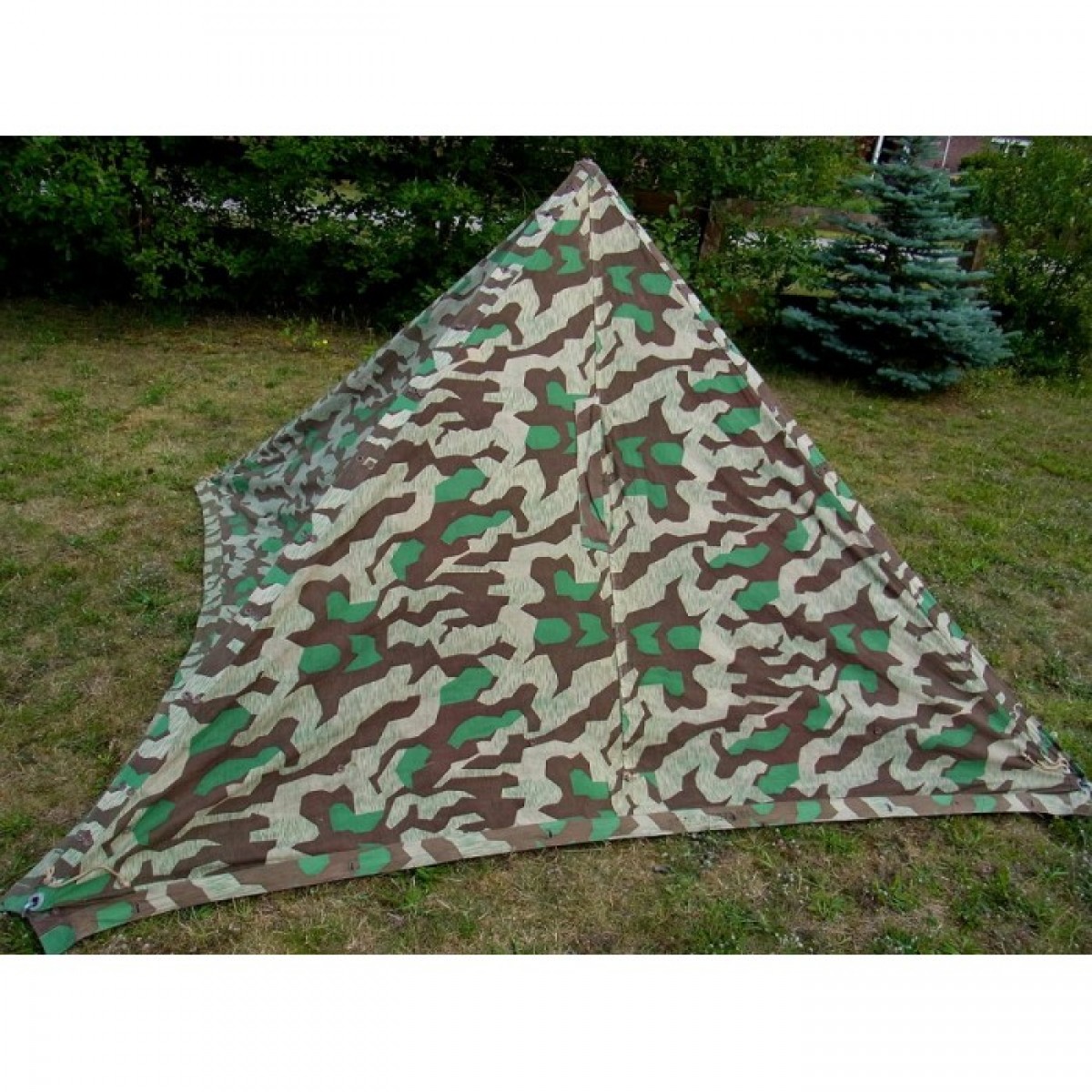 Плащ-палатка Вермахта и Люфтваффе (ВВС Германии) образца 1934 года. Использовалась, как рядовым так и офицерским составом на всем протяжении Второй Мировой Войны на всех кк фронтах и театрах боевых действий. Входила в штатную полевую экипировку военнослужащих Вооруженных Сил Германии. По подобию плащ-палатки Вермахта были созданы и использовались до конца 20-го века плащ-палатки большинства Армий Европейских стран. Плащ-палатка Вермахта и Люфтваффе (ВВС Германии) образца 1934 года позволяет использовать ее ,как для персональной защиты от плохой погоды , так и для оборудования групповых палаток любого размера. Плащ-палатка имеет треугольную форму и двусторонние пуговицы по всему периметру, что позволяет состегивать множество плащ-палаток вместе и создавать палатки любой вместимости по принципу "Пазлс".Для крепления плащ-палатки используются широкие металлические люверсы, которые расположены по краям. Влагоотталкивающий эффект ткани плащ-палатки достигался при помощи использования ткани со специальной плотно прессованной вязкой нити, что позволяет уменьшить капиллярный зазор между нитями и препятствовать проникновению воды. Плащ-палатка имеет две стороны, которые окрашены в разные оттенки камуфляжа. Одна сторона предназначена для лета, другая для осенне-весеннего периода. Современная высококачественная реплика. В наши дни используется, как охотниками, так и для военно-исторической реконструкции и съемок художественных фильмов и телепрограмм.Отзывы о Плащ-палатка M34 Вермахт/Люфтваффе МИЛ ТЕК Германия
