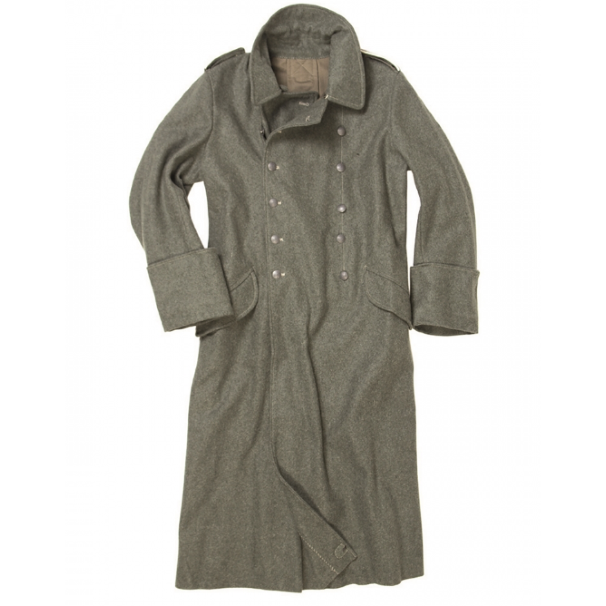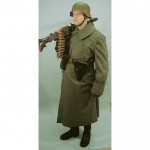 Штатная Полевая шинель Вермахта, SS-VT/W-SS образца 1940 года. Сменила шинель образца 1936 года и использовалась до конца Второй Мировой Войны рядовым и младшим командным составом.Современная высококачественная. Двубортная фронтальная застежка защищает от ветра и холода.На спине расположена специальная выточка с дополнительной застежкой для дополнительного объема. манжеты рукавов снабжены дополнительным отворотом, который позволяет увеличивать длину рукава и защищать руки от холода и ветра, Высокий и широкий воротник имеет дополнительную застежку, которая позволяет фиксировать его в вертикальном положении для защиты шеи и лица от холода. В наши дни шинель используется для военно-исторической реконструкции и съемок художественных фильмов и телепрограмм.
