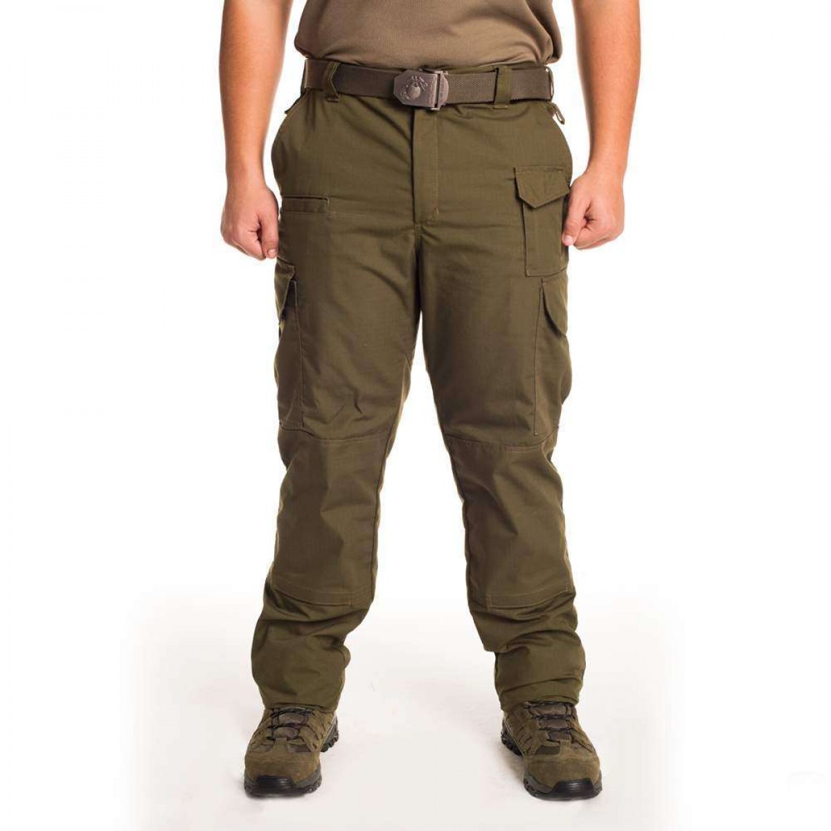 Брюки изготовлены из прочной износостойкой ткани (60%ХБ+40%ПЭ с тефлоновым покрытием либо 50%ХБ+50ПЭ). При изготовлении хлопчатобумажной основы используется плотное саржевое плетение, существенно повышающее стойкость материала к истиранию Дополнительным плюсом будет высокое качество швов – они не только надежны, но и весьма аккуратны.