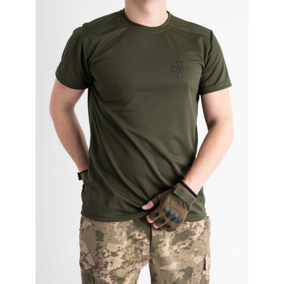Основные характеристики Футболка мужская CoolMax хаки с принтом ВСУ