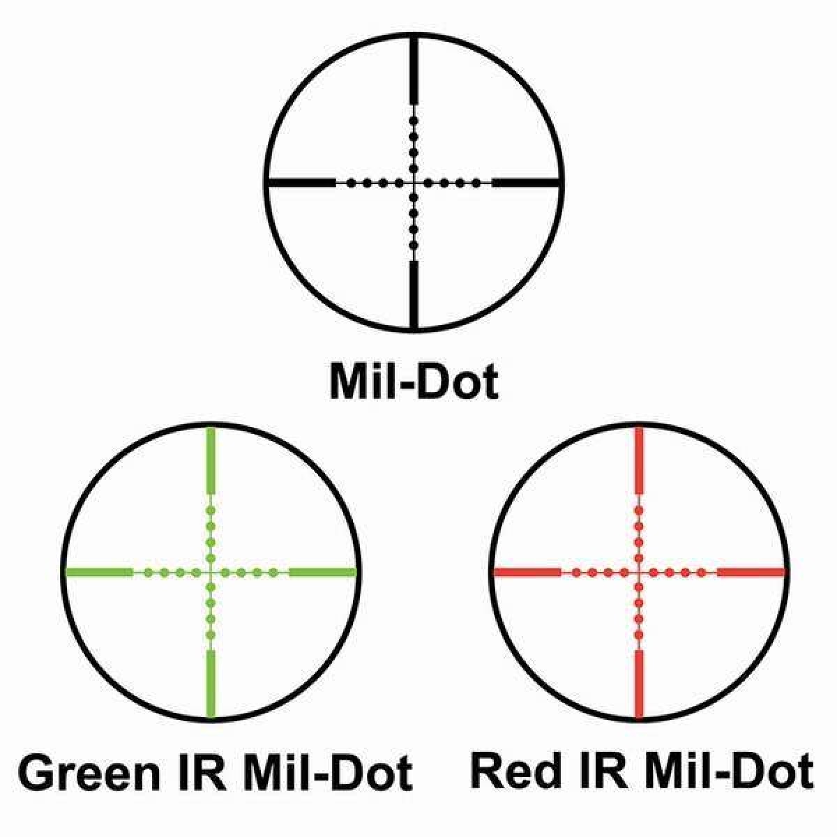 Благодаря прицельной сетке Mil Dot, расстояние до цели можно определить максимально точно, при этом правильно принять поправку на ветер и учесть траекторию падения пули. Данный Mil Dot верен при 10-кратном увеличении. Для быстрого определения расстояния до объекта в комплекте с прицелом поставляется тактическая таблица.