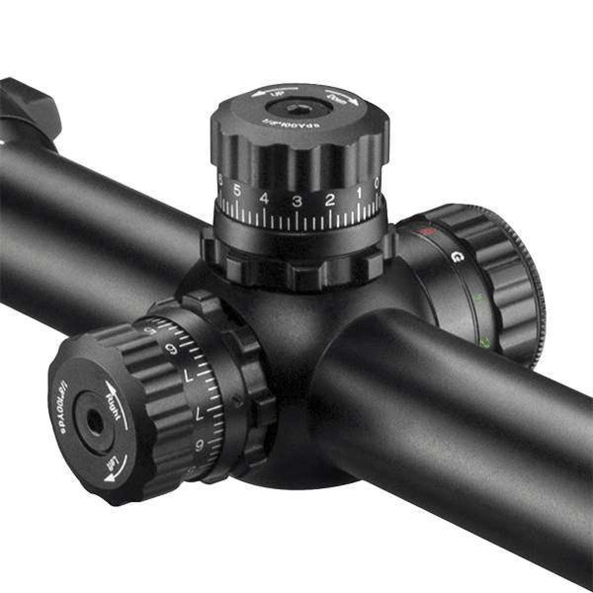 - Подсветка прицельной сетки: красная/зеленая, регулируемая, по 5 уровней яркости для каждого цвета