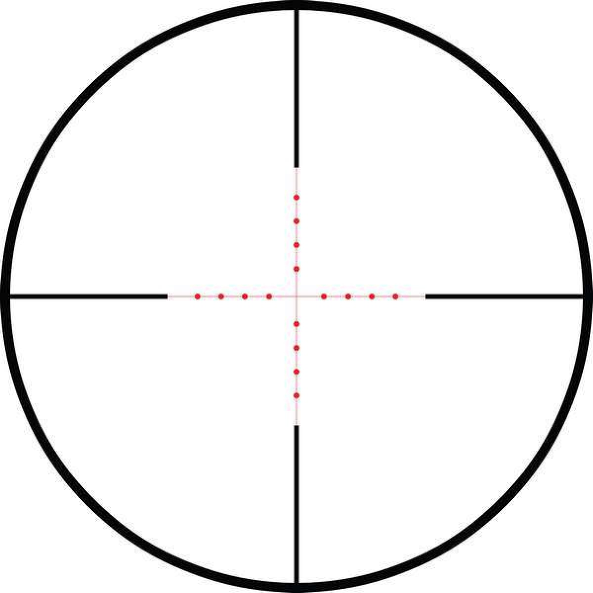 Mil Dot - одна из самых универсальных прицельных сеток, все компоненты этой сетки имеют строго регламентированные размеры, расстояния между всеми элементами также регламентированы. Благодаря этому не проблема определить расстояние до цели, приняв при этом правильную поправку на ветер и определить траекторию полета и падения пули. Данный Mil Dot верен при 10-кратном увеличении. Для других увеличений линейные и угловые размеры определяются методом интерполяции, либо по специальным таблицам. Персональную адаптацию сетки под конкретное оружие и тип снаряда позволит совершить бесплатный баллистический калькулятор X-ACT