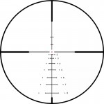 Выгравированная на стекле сетка DOA-LRH800 расположена во второй фокальной плоскости и имеет подсвечиваемую центральную точку для быстрого прицеливания. Разметка сетки позволяет корректировать стрельбу с учетом влияния ветра и траектории пули на больших дистанциях без необходимости вносить изменения через барабаны.
