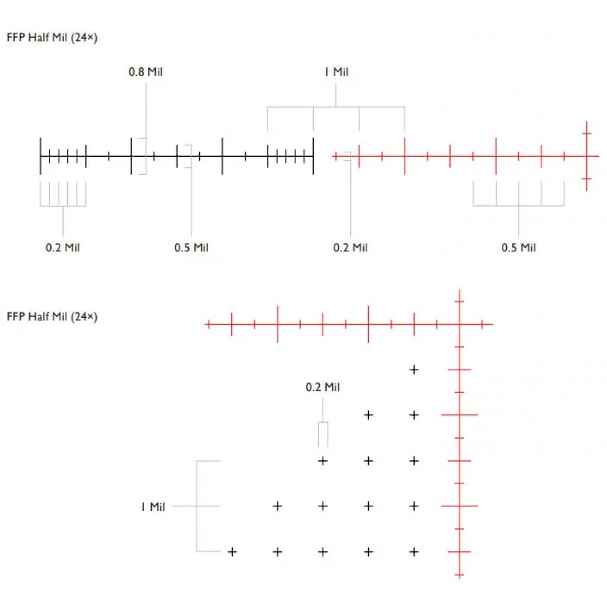 Особенности Hawke Sidewinder 6-24x56 SF FFP: - Прицельная сетка FFP Half Mil располагается в 1 фокальной плоскости и имеет подсветку в 2-х цветовых вариантах – зелёном и красном. Для каждого из них предусмотрена регулировка интенсивности свечения: значения от 1 до 3 подходят для использования при низком уровне освещения, значения 4 и 5 наиболее удобны при стрельбе днем и полезны при выцеливании объектов на тёмном фоне. Сетка имеет постоянные размеры и толщину линий пpи любой ĸpaтнocти. - Линзы из низкодисперсионного оптического стекла. - Полное многослойное просветление линз (18 слоев). - Прицел оснащен удобной боковой системой отстройки параллакса SF (Side Focus) и может использоваться с большим 4” колесом отстройки от параллакса. - Съемный рычаг для быстрого и удобного изменения кратности. - Механизм управления подсветкой и батарейный отсек расположены на барабанчике отстройки от параллакса.