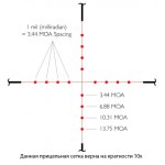 • Выгравированная на стекле прицельная сетка Mil Dot с зеленой/красной подсветкой (по 5 уровней регулировки яркости). Для адаптации сетки под конкретное увеличение, оружие и тип снаряда можно воспользоваться баллистическим калькулятором.