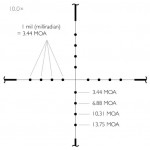- Прицельная сетка Mil Dot без подсветки. При менее чем 10-кратном увеличении линейные и угловые размеры определяются методом интерполяции или по специальным таблицам.