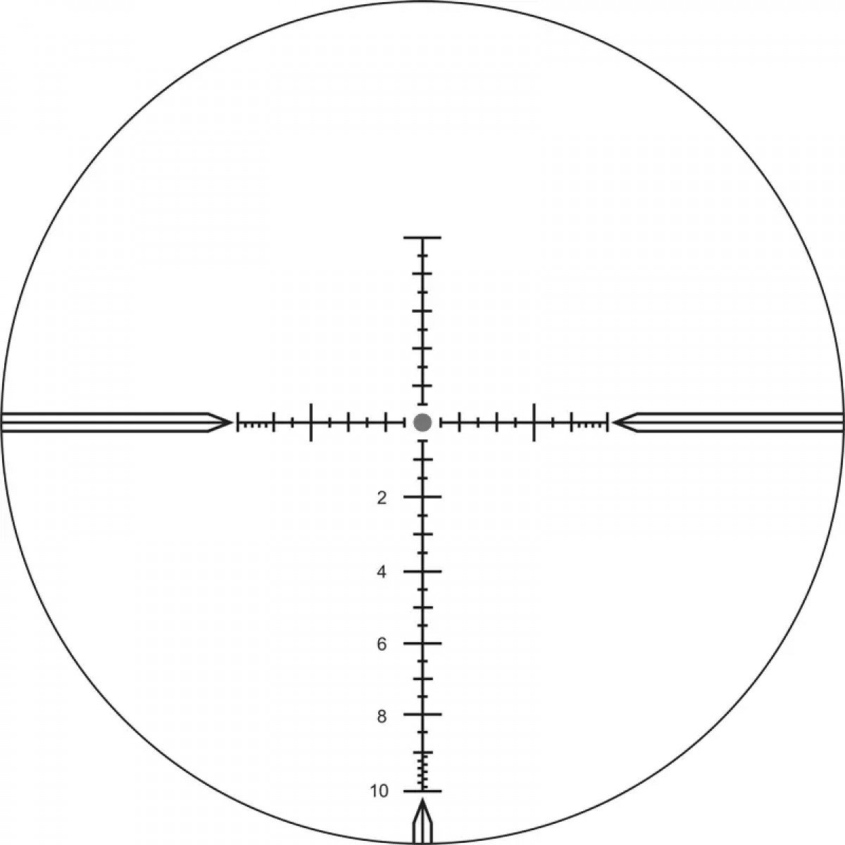 Выгравированная на стекле прицельная сетка расположена в первой фокальной плоскости.