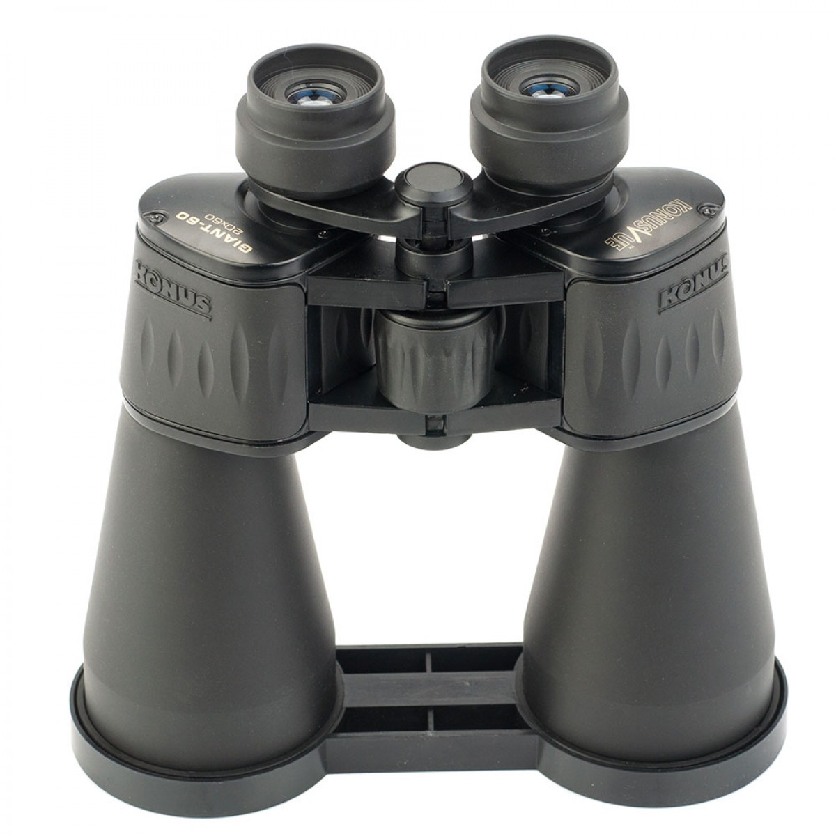 Бинокль Konus GIANT-60 20х60 с 20-кратным увеличением и поражающей апертурой 60 мм. Задача бинокля – добиться максимального поля зрения и обеспечить выдающийся панорамный обзор. Он отлично подходит для наблюдения за птицами, также для исследования ночного неба. Из-за большого увеличения его рекомендуется использовать со штативом.