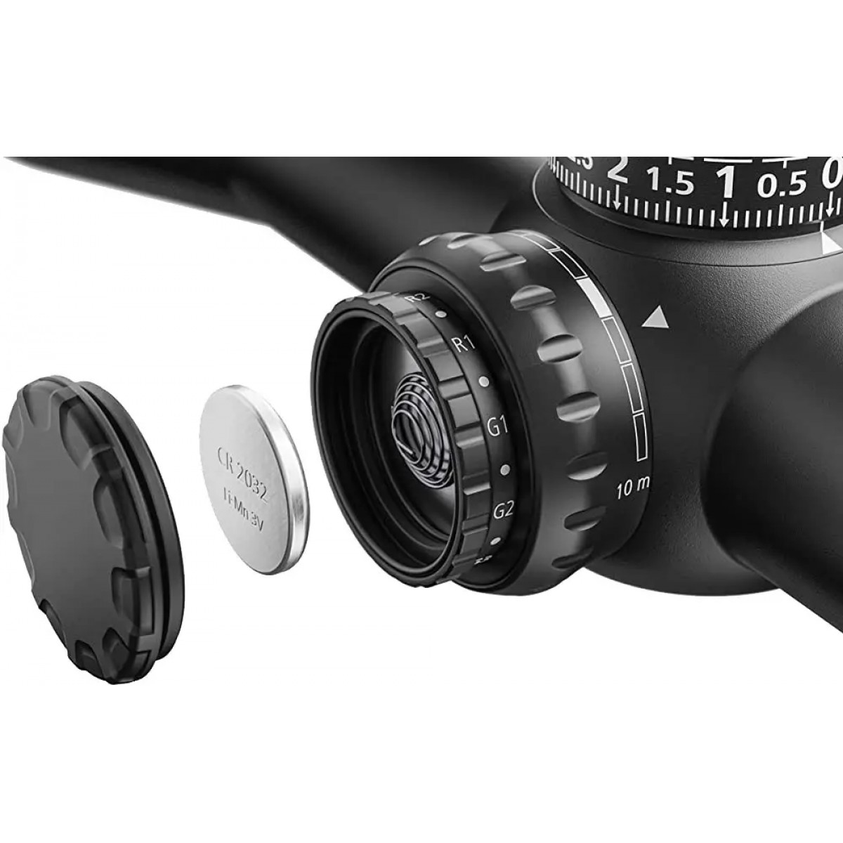 Подсвечиваемая сетка ZF-MRi (Milliradian) расположена в первой фокальной плоскости. Технология дифракционной подсветки обеспечивает очень высокий уровень яркости и отличную видимость прицельной сетки даже при очень ярком дневном свете. Подсветка имеет 5 уровней регулировки яркости и функцию автоматического отключения.