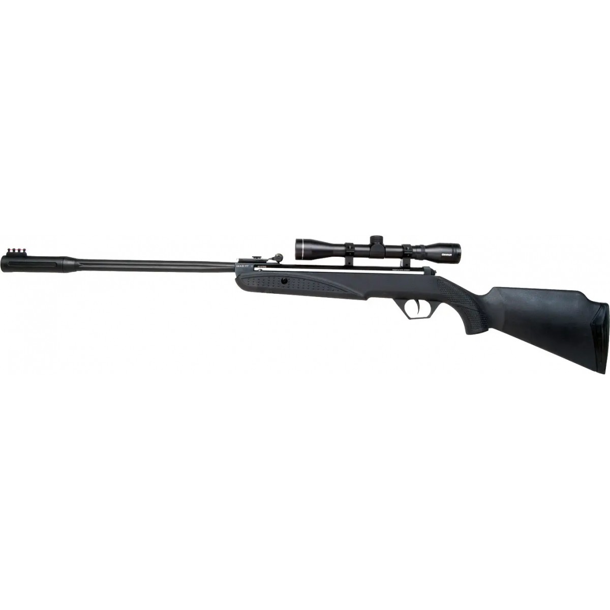 Интегрированный саундмодератор придает винтовке более привлекательный вид за счет большей толщины ствола и значительно снижает звук выстрела. Оптоволоконные целик и мушка позволяют прицеливаться в любых условиях освещения – как при дневном свете, так и в сумерках. Для установки оптического прицела на ствольной коробке предусмотрен профиль «Ласточкин хвост».