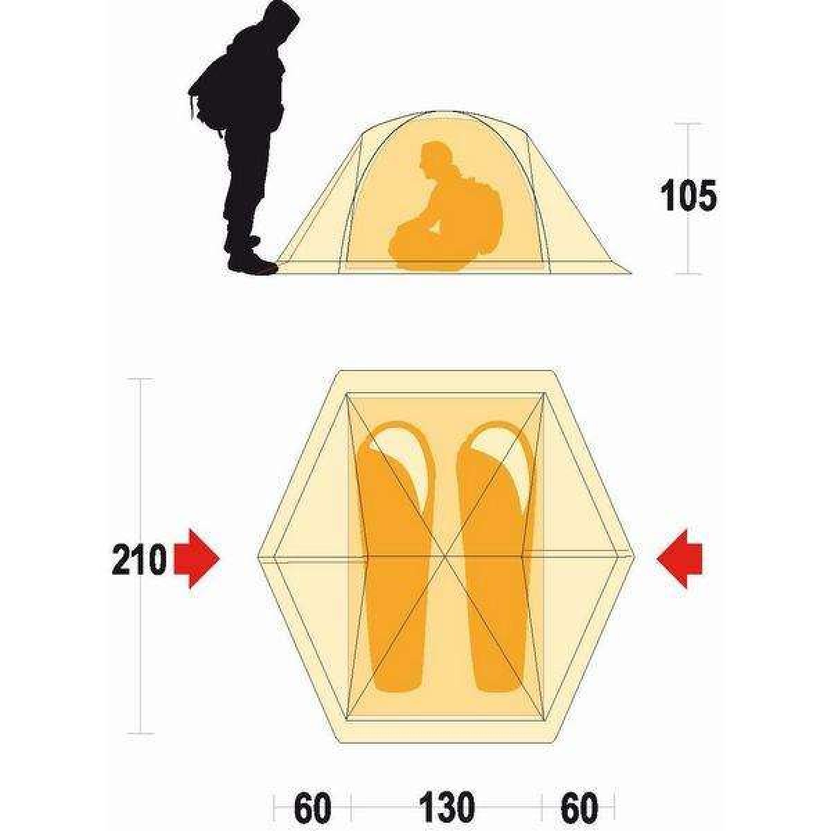 - Внутренняя палатка (ДхШхВ), мм: 2100 х 1300 х 1050