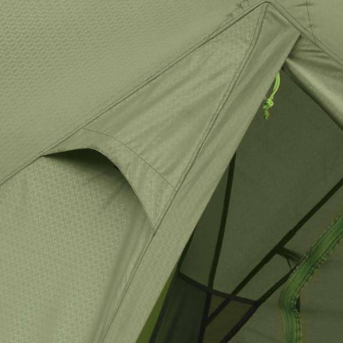 - Конструкцией предусмотрено два вентиляционных окна, расположенных со стороны входов в палатку. Их особенностью является возможность закрывать окна не только снаружи, но и изнутри. Система вентиляции Camera Air создает большую воздушную камеру между внешним тентом и внутренней палаткой, которая содействует свободной циркуляции воздуха вокруг внутренней палатки. С одной стороны это избавляет от появления конденсата внутри, а с другой стороны воздух является лучшей теплоизоляционной прослойкой.