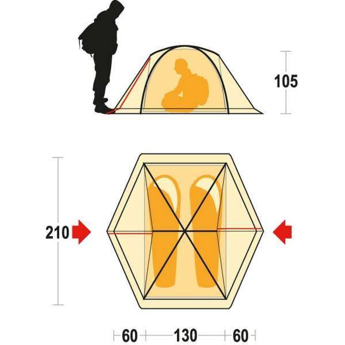 - Внутренняя палатка (ДхШхВ), мм: 2100 х 1300 х 1050