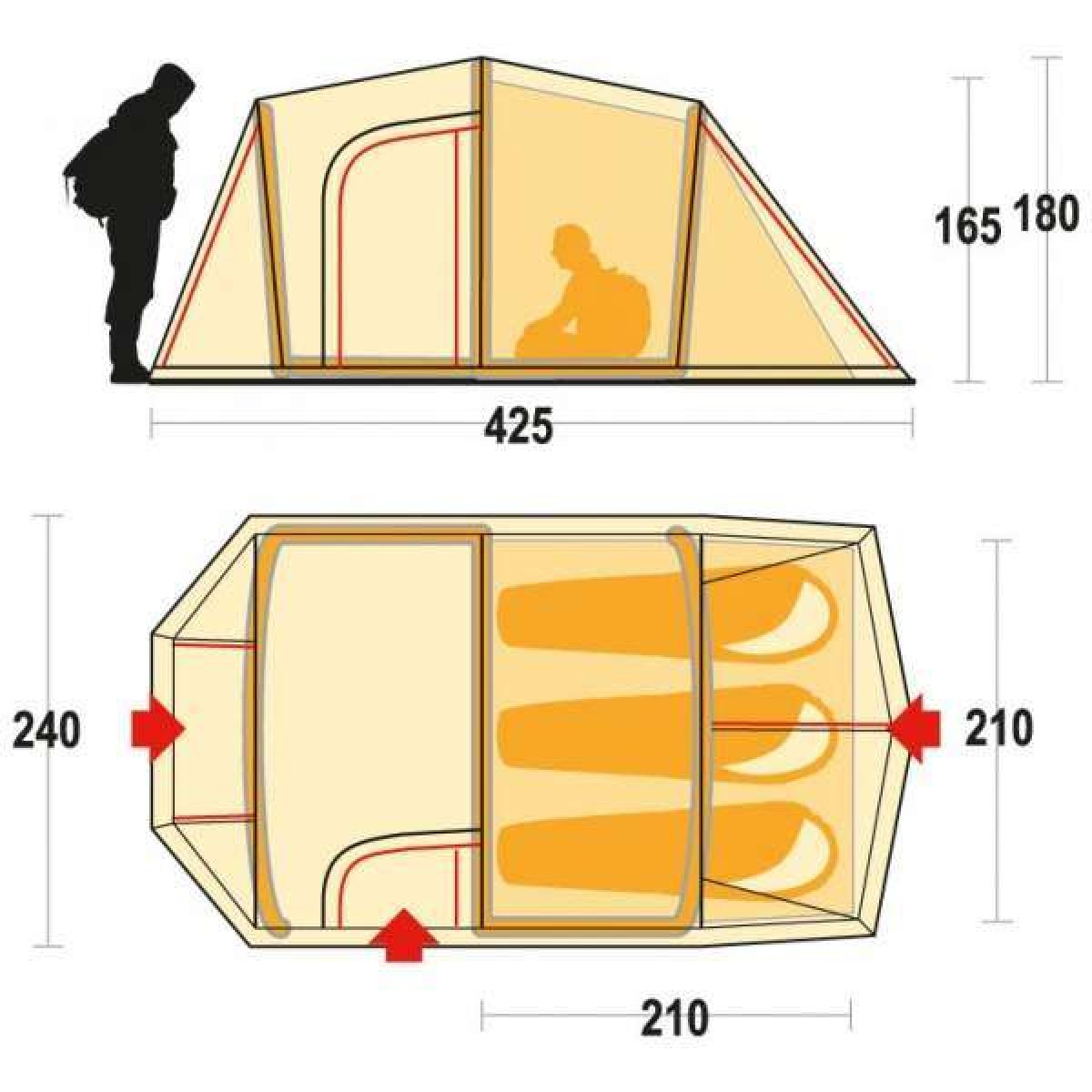 - Внешняя палатка (ДхШхВ), мм: 4250 х 2400 х 1800