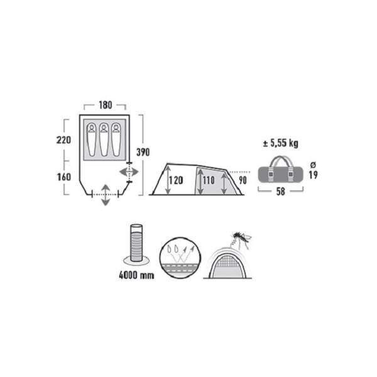 - Вес палатки: 5.55 кг