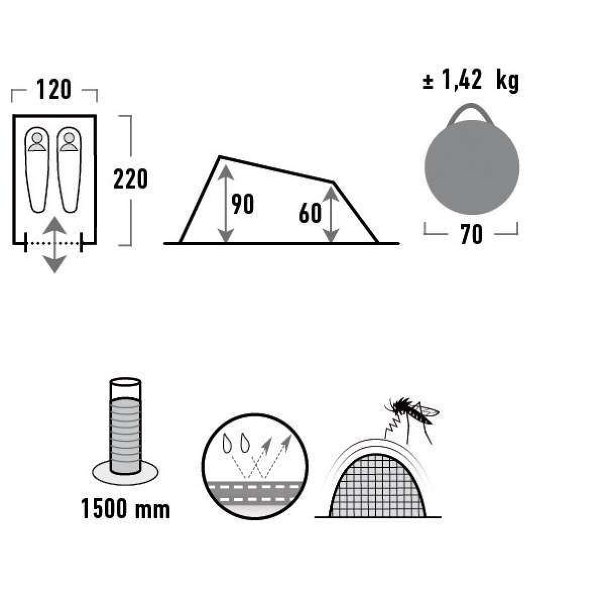 - Габариты внешней палатки (ДхШхВ), мм: 2200x1200x900(600)